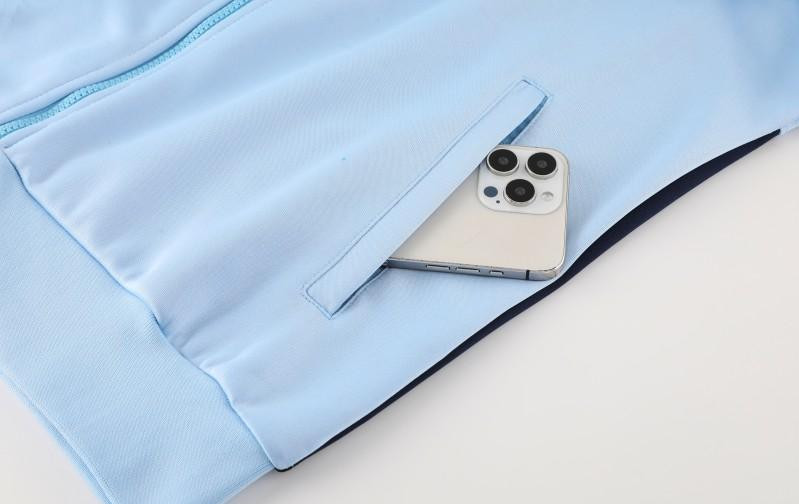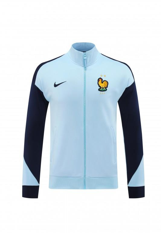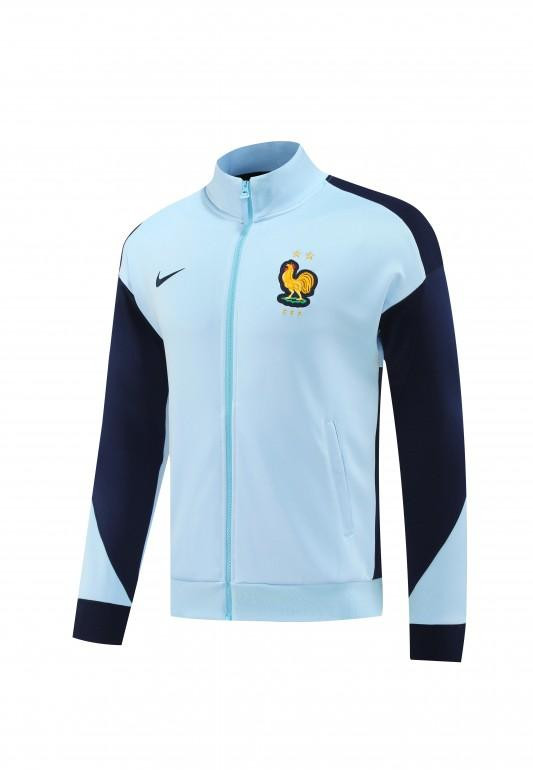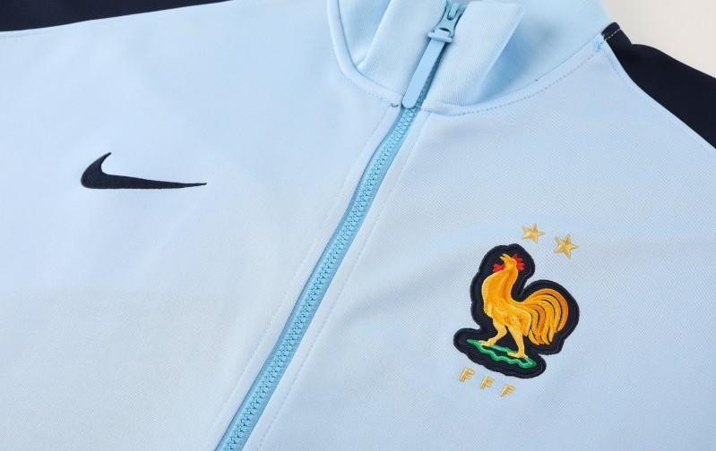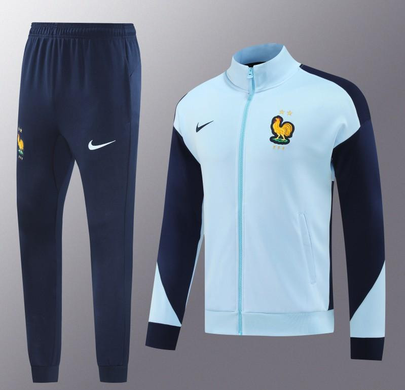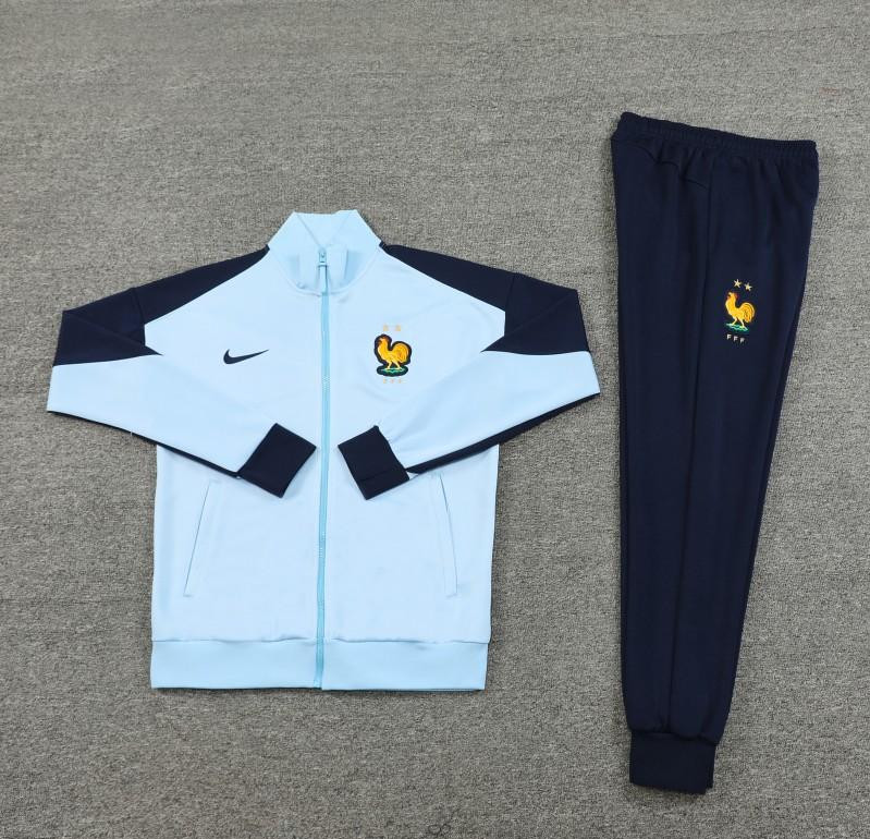 2024 France Light Blue Full Zipper Jacket +Long Pants