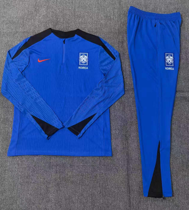 2024 Kids South Korea Blue Half Zipper Jacket+Long Pants