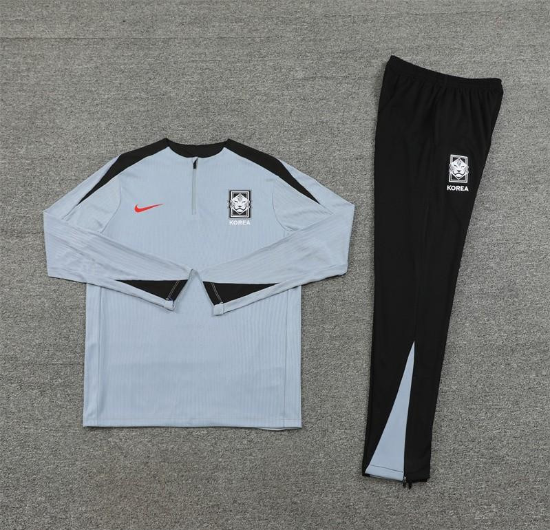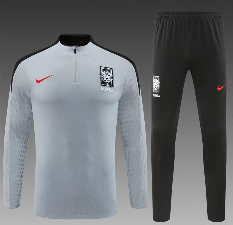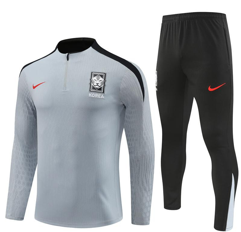 2024 South Korea Grey Half Zipper Jacket+Long Pants