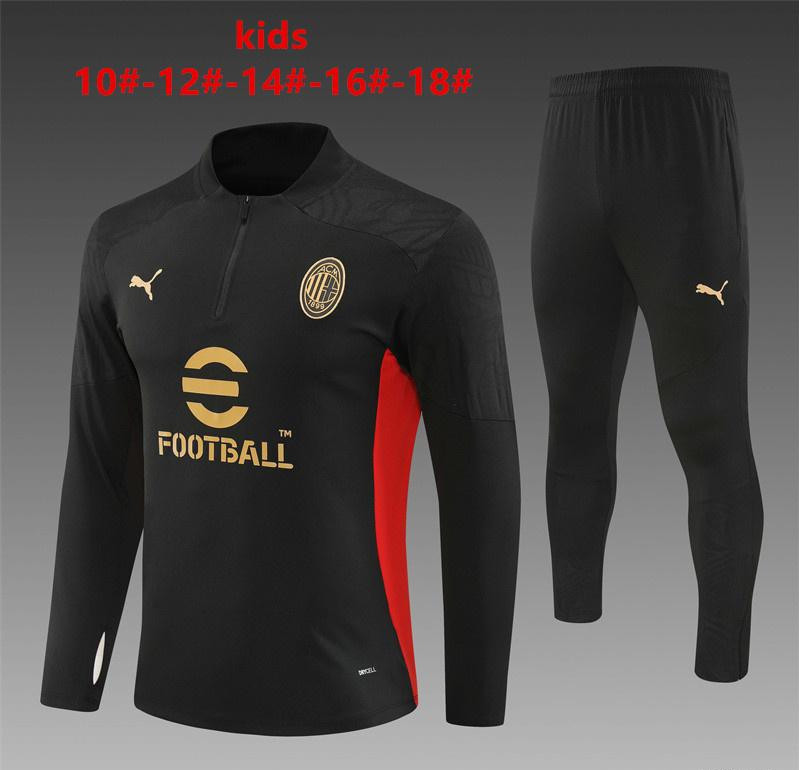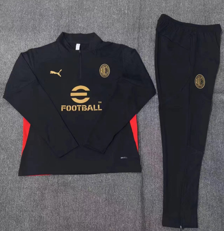 24/25 Kids AC Milan Black Half Zipper Jacket+Long Pants