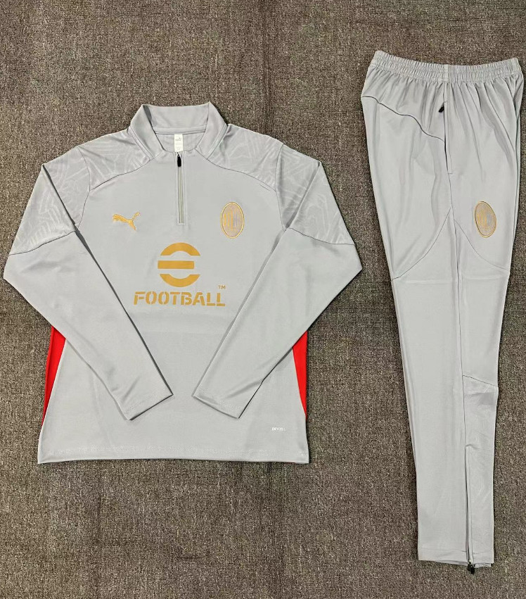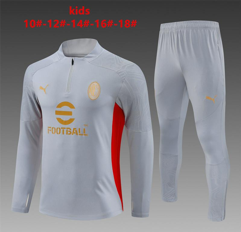 24/25 Kids AC Milan Grey Half Zipper Jacket+Long Pants