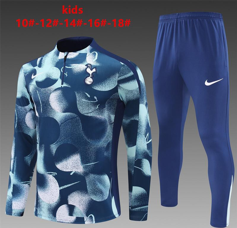 24/25 Kids Tottenham Hotspur Blue Camouflage Half Zipper Jacket+Long Pants