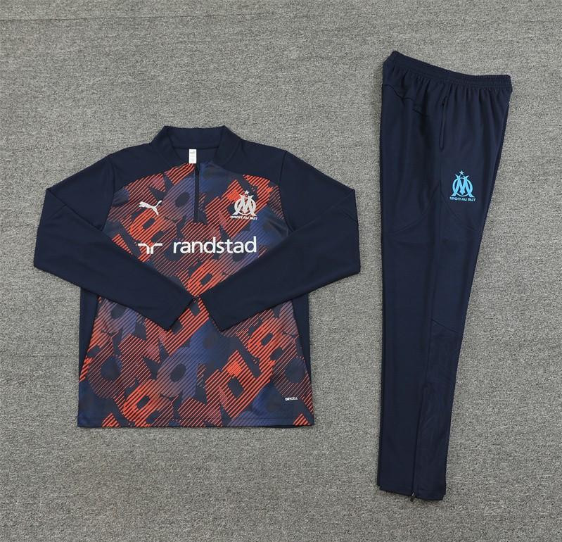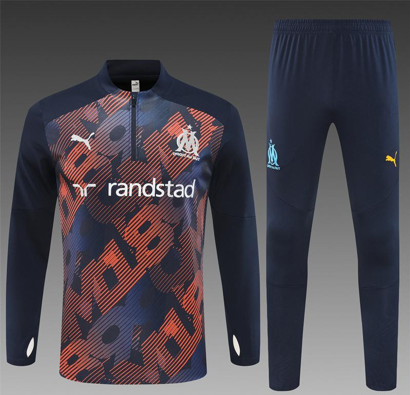 24/25 Olympique Marseille Navy Mixed Color Half Zipper Jacket+Long Pants