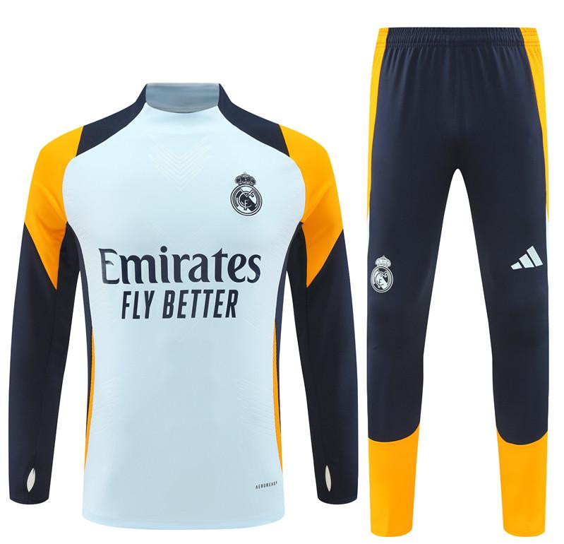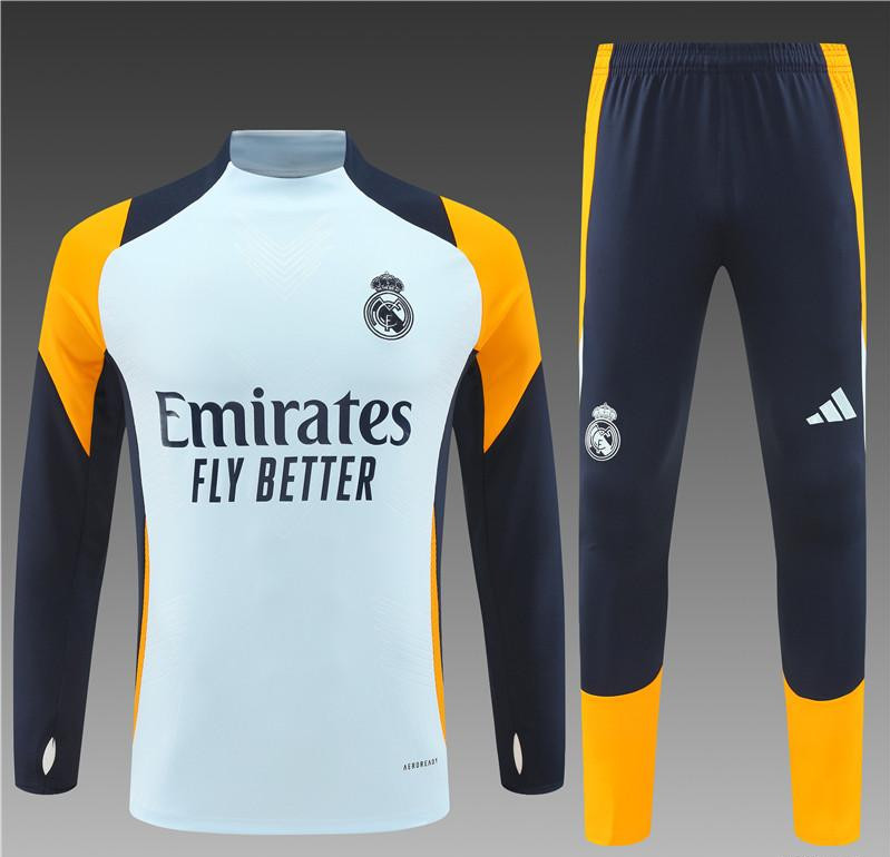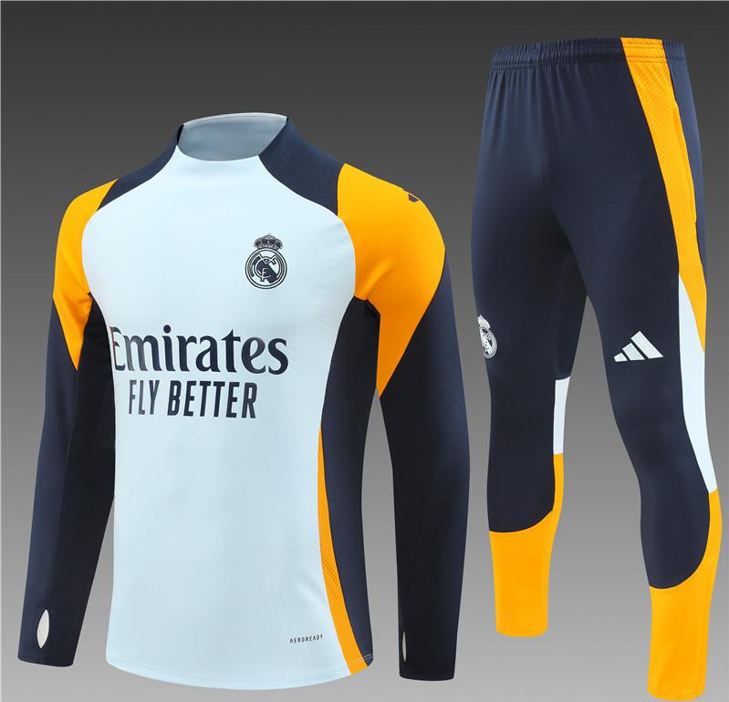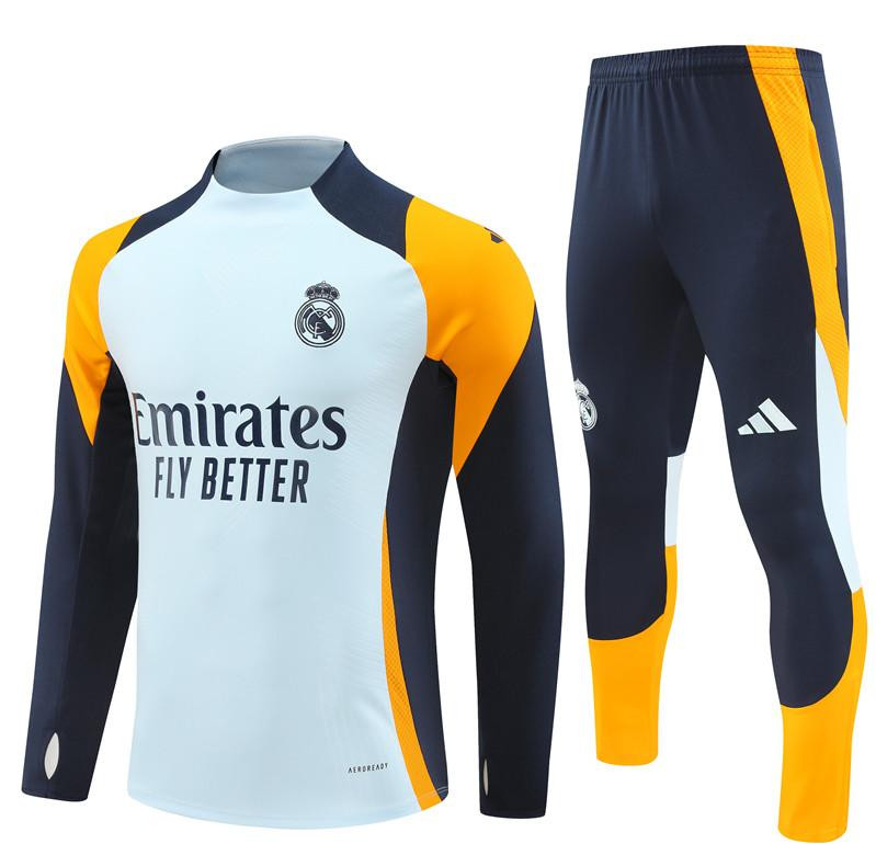 24/25 Real Madrid Light Blue/Navy/Orange Half Zipper Jacket+Long Pants