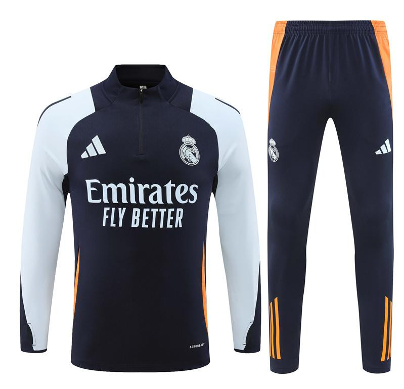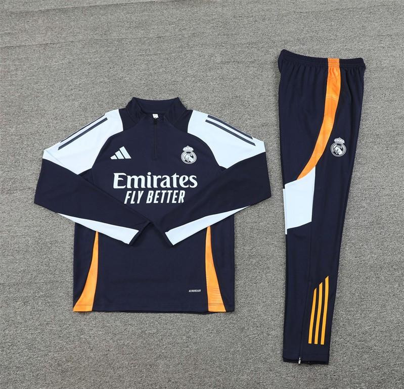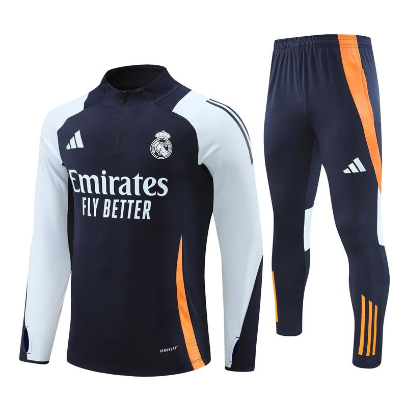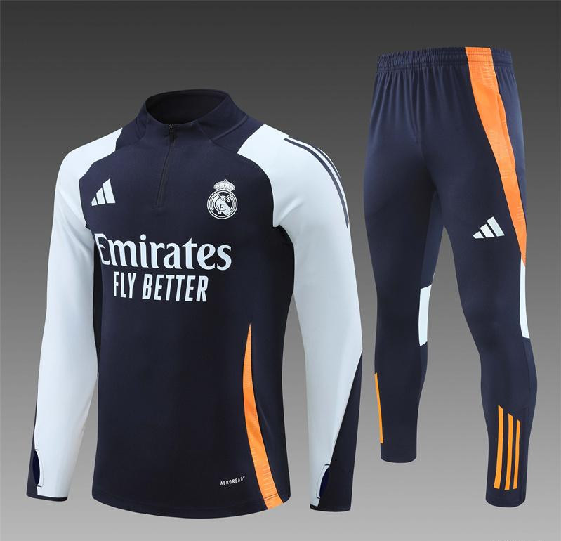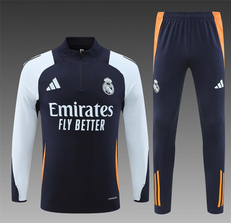 24/25 Real Madrid White/Navy Half Zipper Jacket+Long Pants