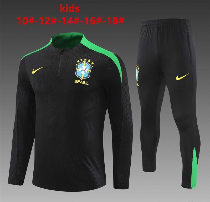Player Version 2024 Kids Brazil Black Half Zipper Jacket+Long Pants